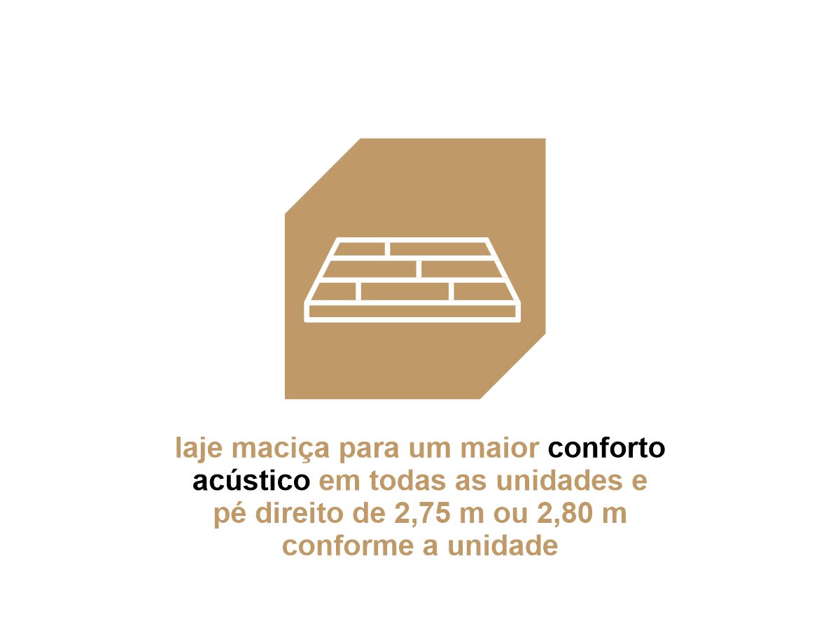 O Térreo conta com porte-cochére, lobby e bicicletário e o Mezanino com espaços de lazer sendo; piscina adulto e infantil, deck, sauna, espaço kids, playground, gourmet, fitness, churrasqueira com piscina, miniquadra, e salão de festas;